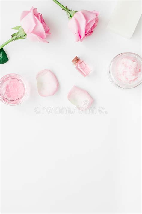 Body Treatment With Rose Flowers And Cosmetic Set White ...